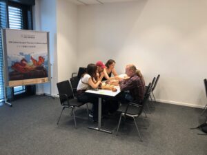 An den 3 Tagen konnten wir mit 6 Helfern über 200 Leuten das Gospiel zeigen. Die Veranstaltung fand 100 Jahre nach dem 1. Go-Turnier in Deutschland statt und das große Reklameposter im Raum nahm darauf Bezug.