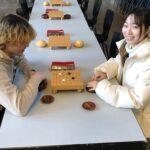 Kaku und Akira Maekawa entspannen am 9×9-Tisch
