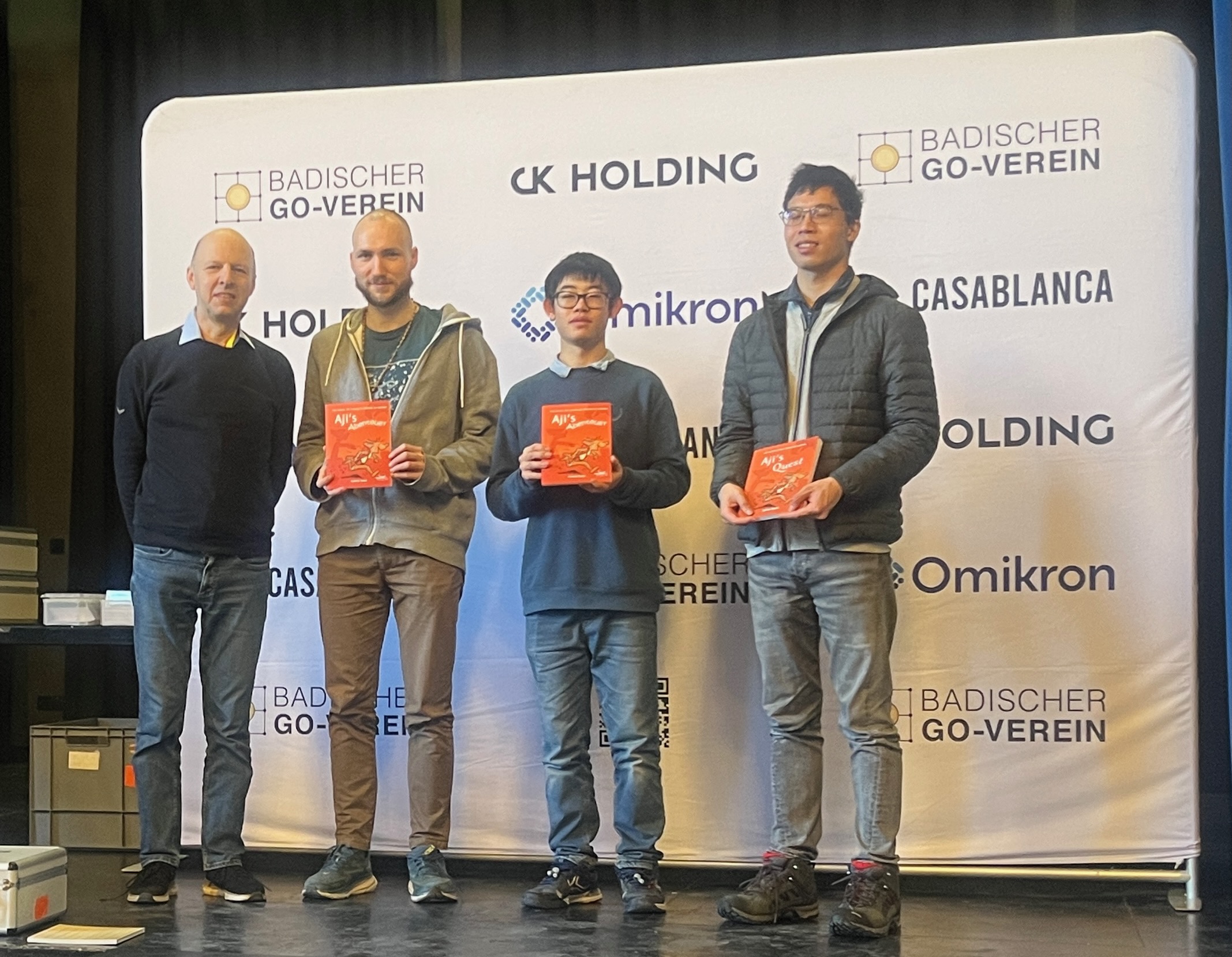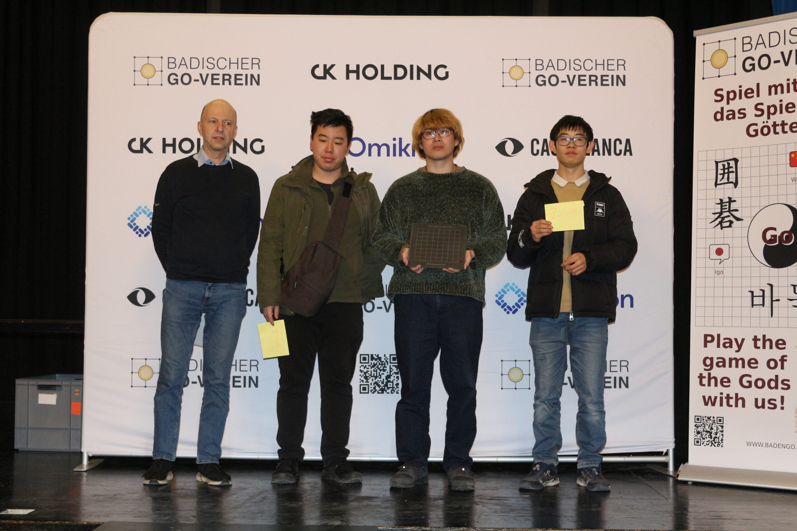 Siegerehrung: Wilhelm Bühler (TL), Xinghong Chen (5d), Kaku Maekawa (6d), Shukai Zhang (5d)